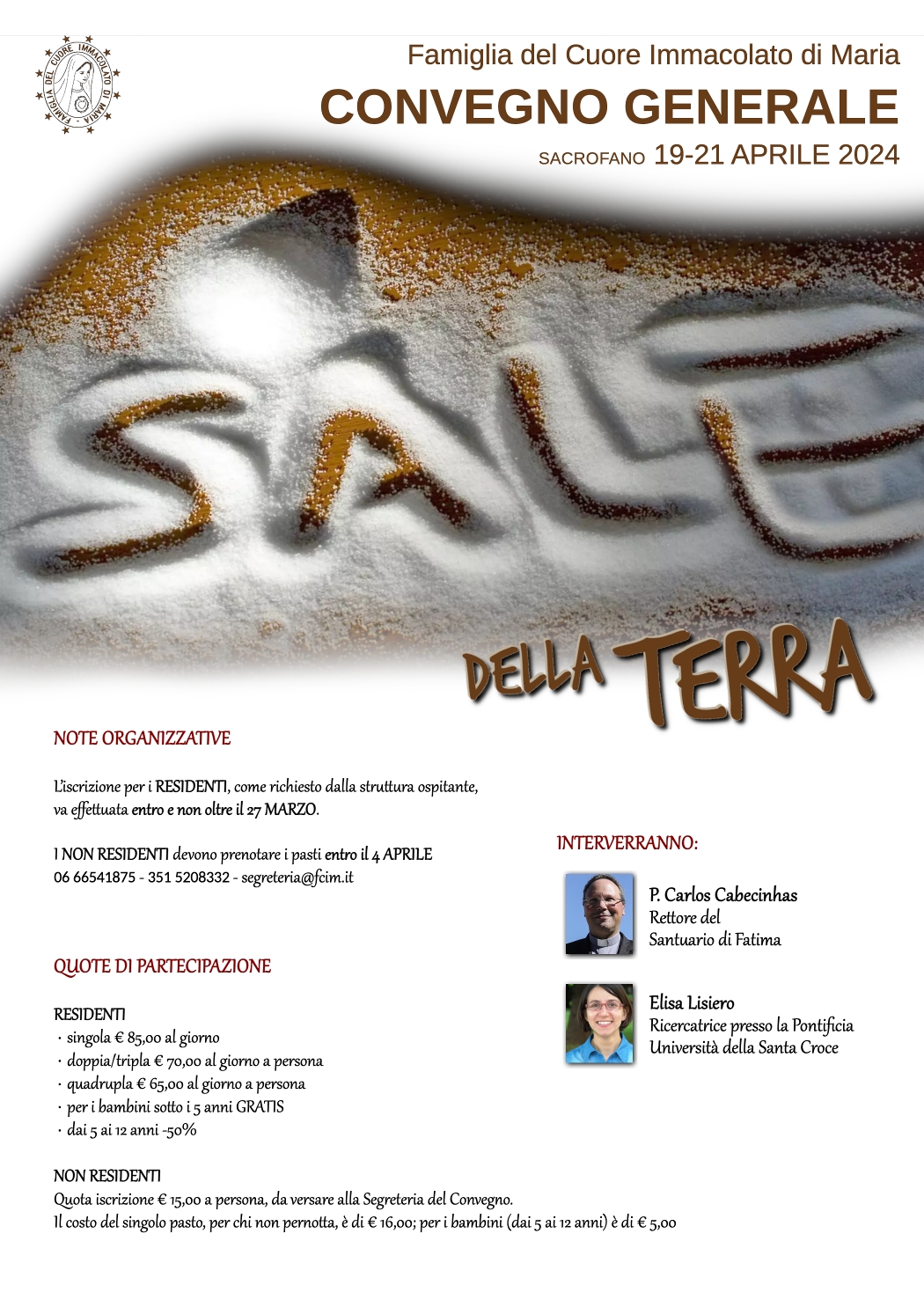 Avremo la gioia di avere con noi il Rettore del Santuario di Fatima, P. Carlos Cabecinhas e la dott.sa Elisa Lisiero, ricercatrice presso la Pontificia Università della Santa Croce.
