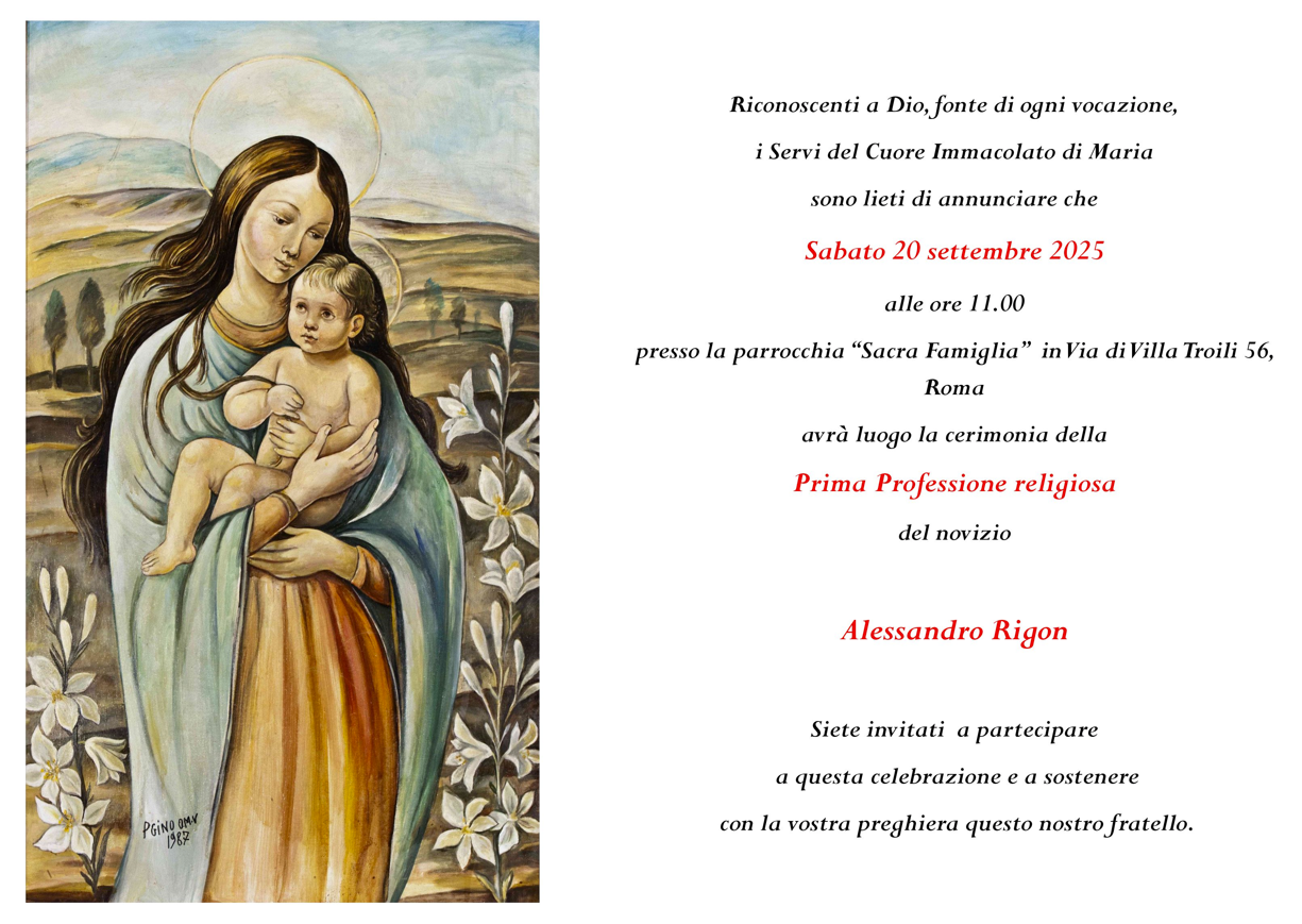 Preghiamo per nostro fratello Alessandro perché il Signore e Maria Santissima assistano il suo cammino e continuino a far di lui uno strumento di bene per il Movimento della Famiglia del Cuore Immacolato di Maria e per tutta la Chiesa.
